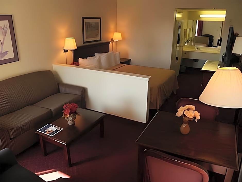 Escape to our cozy One Room Suite with a Queen bed and sofa bed, accommodating 3 adults and 2 children. Enjoy a spacious 301 sqft non-smoking retreat with convenient amenities like air conditioning and a private entrance.